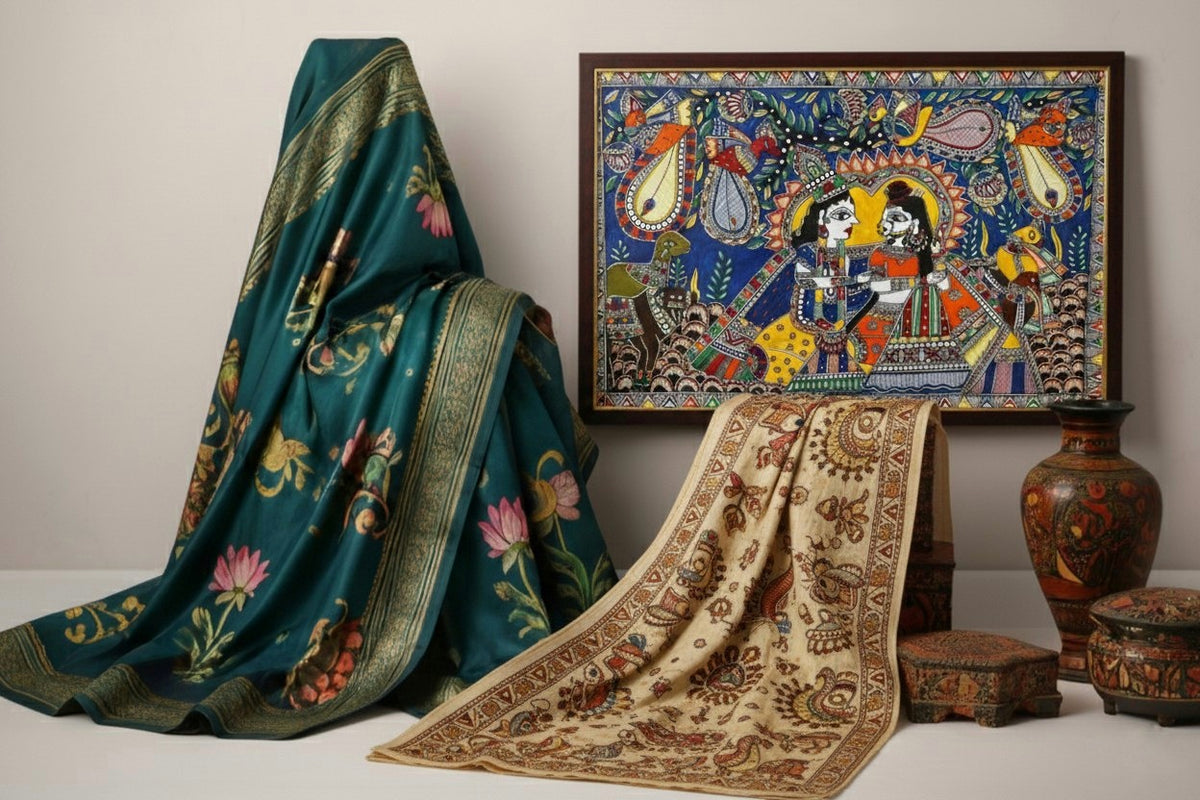Where ancient artistry meets contemporary elegance. Discover our exquisite collection of handcrafted Madhubani paintings and traditional Indian sarees and many more.