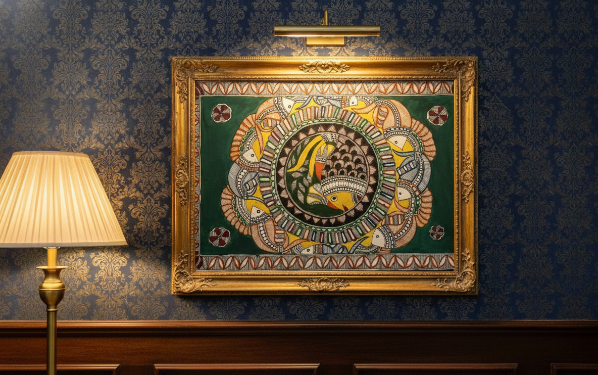Matsya, the divine fish avatar of Vishnu, emerges as a powerful symbol of preservation and cosmic balance in Hindu philosophy. This painting captures the mythological narrative where Matsya rescues the sacred texts and life forms during the great deluge, embodying divine intervention and protection. The artwork showcases intricate brushwork and traditional iconographic elements, presenting this celestial being with characteristic features—the fish form merged with human attributes, often depicted in dynamic motion through cosmic waters. Rich in spiritual significance, this piece serves as both a devotional artwork and a striking visual representation of ancient Hindu cosmology. Ideal for collectors seeking authentic mythological art that bridges spiritual reverence with aesthetic excellence.
